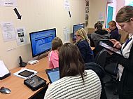 Kaitlin, Nicole and Rebecca uploading apps on to the computer.