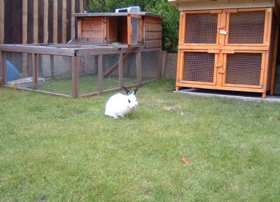 Images of some of our hutches, run and the resident Rabbit, BINKY & our pet friendly dog, ROXY.