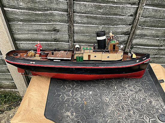 For sale 1 Ring 07747 777288 Small yacht £100.00 Nangee twin screw tug £250.00 Lady Jan Tug boat with transmitter £300.00 Small fishing boat with case £95.00 Thor tug boat £105.00 Small lifeboat with twin motors £75.00