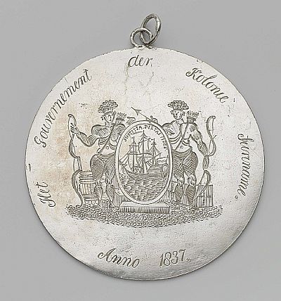 The Rijksmuseum in Amsterdam holds a silver medal (right) given to the slave George, who warned his master of the planned revolt.